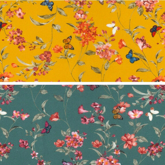 Floral 100% Cotton Fabric Butterflies Sewing Craft 150cm Wide Dressmaking