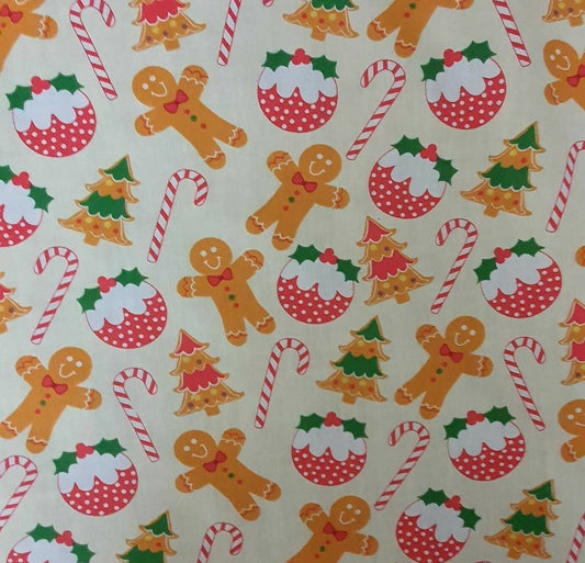 Gingerbread Men Christmas Polycotton Fabric Candy Cane Christmas Pudding Xmas