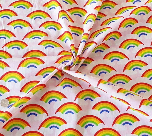Pink Rainbow Polycotton Fabric Rainbow Clouds Pride Material Sewing Craft